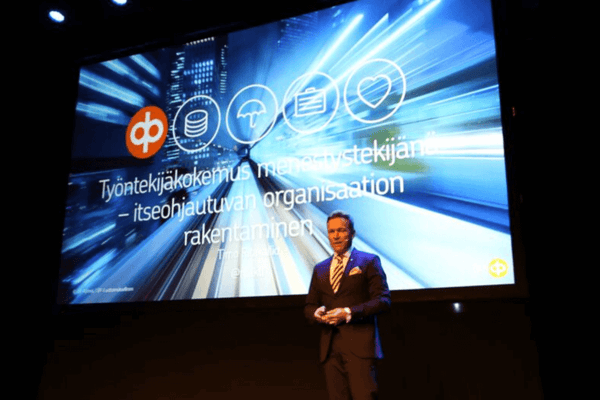 Päivän teeman mukaisesti, tulevaisuuden tuomat muutokset koskettivat myös alati OP:n toimintaympäristöä. Timo kertoi heidän uskovansa siihen, että kilpailun kiristyessä tärkeintä oli kyetä luomaan paras asiakaskokemus. Jotta tähän päästäisiin, parasta asiakaskokemusta ei saanut kukaan aikaiseksi, elleivät ihmiset olleet motivoituneita tai tunteneet työtään merkitykselliseksi. Ihmisille oli yhä tärkeämpää saada kokea merkityksellisyyttä omassa työssään ja tämä korostui etenkin nuorten keskuudessa, kuten monista tutkimuksista kävi ilmi.