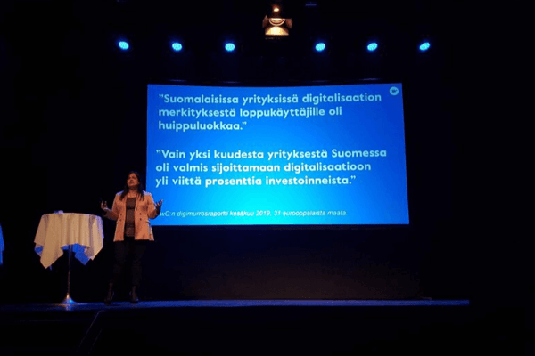 Marjaana kertoi esimerkkinä kyselyistä, joiden mukaan suomalaisyritysten digistrategiat ovat maailmanluokkaa, mutta ne eivät johtaneet haluttuihin lopputuloksiin. Samalla osaamisen ennakointia ei osattu riittävän hyvin tehdä. Suomalaiset yritykset nimittäin palkkasivat vähiten vastavalmistuneita kansainvälisiä opiskelijoita kaikista eurooppalaisista maista.